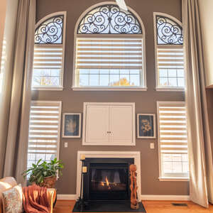 Hunter Douglas zebra shades, also known as dual or layered shades, offer a contemporary and versatile window treatment solution that combines the functionality of blinds with the softness of fabric. These shades feature alternating horizontal bands of sheer and opaque fabric, allowing you to easily transition between light filtering and room darkening as the bands align. With a simple adjustment, you can enjoy varying levels of light control and privacy to suit your needs and mood. Available in a variety of colors, textures, and patterns, Hunter Douglas zebra shades add a modern and stylish touch to any room. Their sleek design and customizable options make them an ideal choice for those seeking both aesthetic appeal and practical functionality in their window coverings.